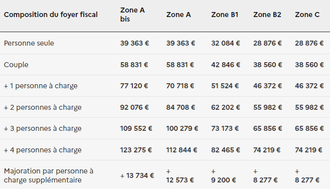 Concernant le choix du locataire, son revenu fiscal de référence ne doit pas dépasser les plafonds réglementaires ci-dessous :