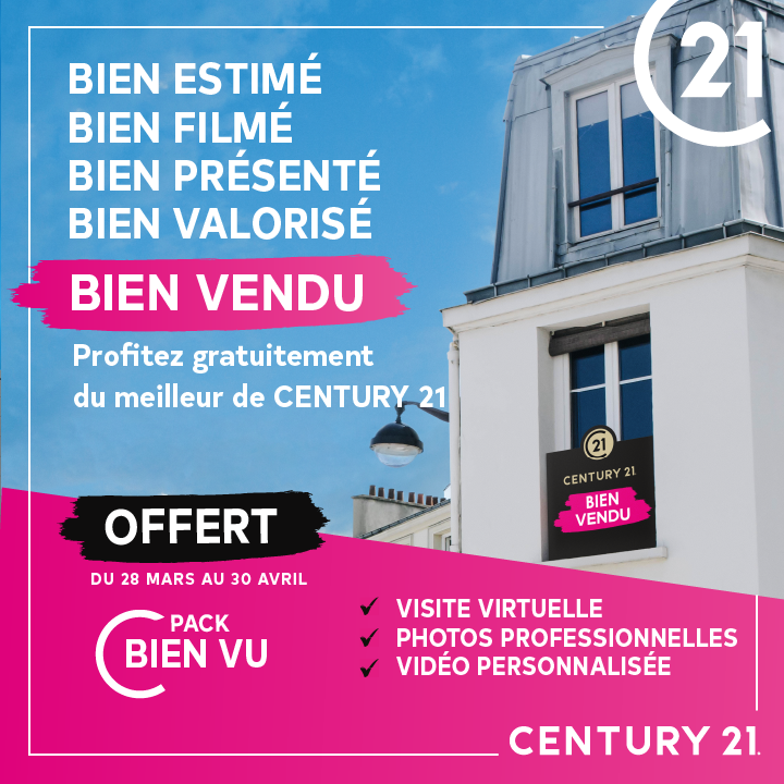 Du 28 mars au 30 avril, le réseau Century 21 met en place son opération nationale « Pack C Bien Vu ». Durant cette période, profitez de nos services qui offriront une visibilité maximale à votre bien.